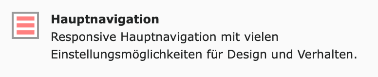 Das Inhaltselement "Hauptnavigation" wird meist nur in den Headern (Header, Fixed Header, Mobiler Header) verwendet.
